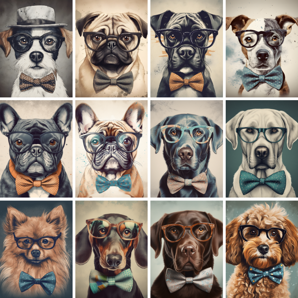 A selection of 12 pieces of digital dog art. Use the digital files to print wall art, put it on t-shirt, pillows, mug or whatever you want.